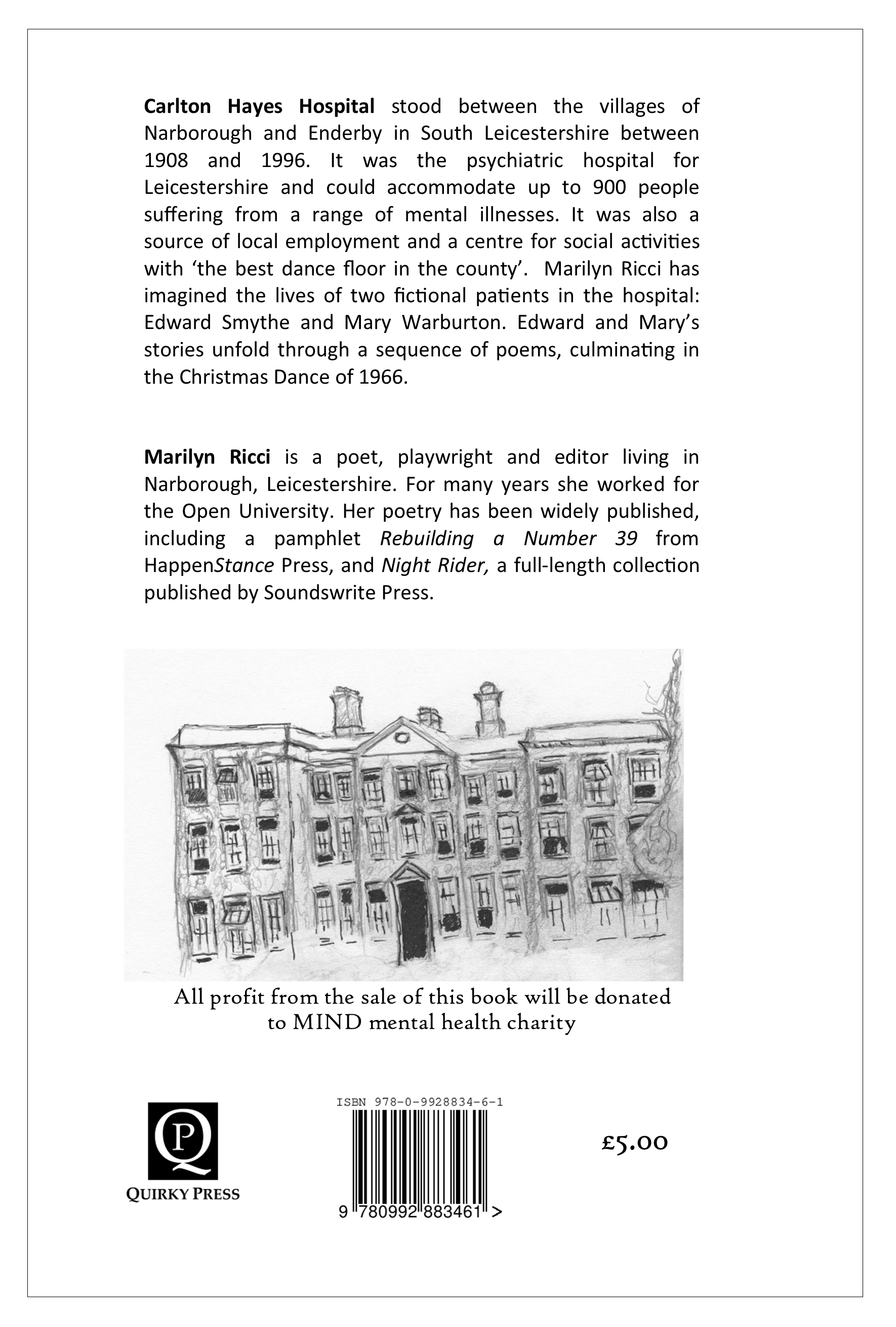 Marilyn Ricci has imagined the lives of two fictional patients in the hospital: Edward Smythe and Mary Warburton. Edward and Mary’s stories unfold through a sequence of poems, culminating in the Christmas Dance of 1966.